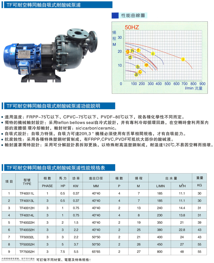 台泉耐酸碱自吸水泵,也叫“大头泵”“马肚泵”同轴耐酸碱自吸泵适用与所有含酸碱腐蚀性液体的化工,污水抽送与排放。水泵广泛使用于电渡、涂装、化工、PCB线路板、环保设备等方面。